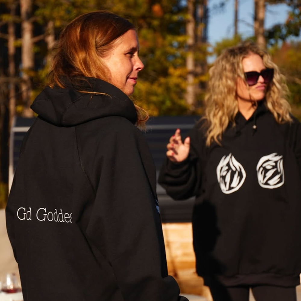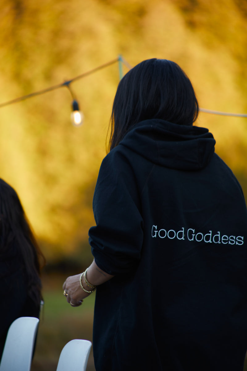- Good Goddess logo at the back (below hood)